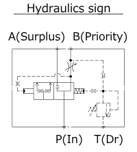 This valve is composed of pressure compensation spool,variable throttle valve and relieve valve. Even if there is pressure variation in B port,entrance P port, exit A and B port,it flows preferentially into B port the constant flow and flows that surplus into A port.